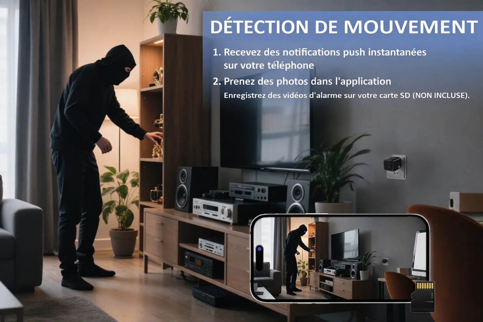 - La caméra commence à enregistrer dès qu’un mouvement est détecté, vous assurant de ne jamais manquer un moment important.